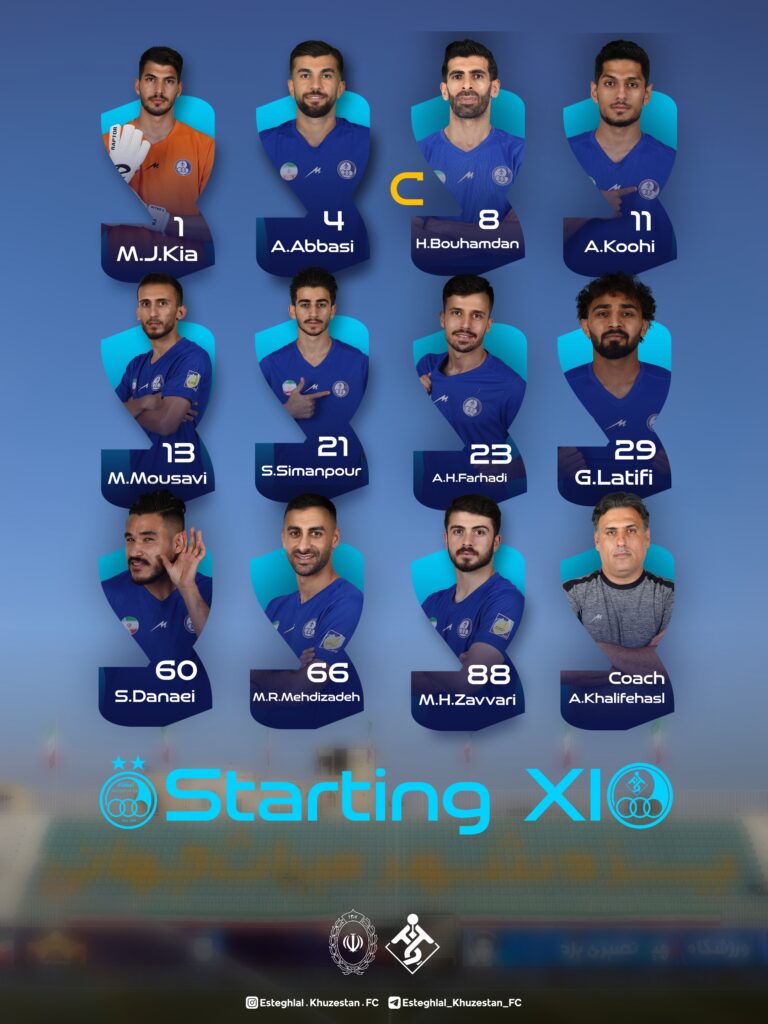 لیست بازیکنان استقلال خوزستان مقابل استقلال تهران